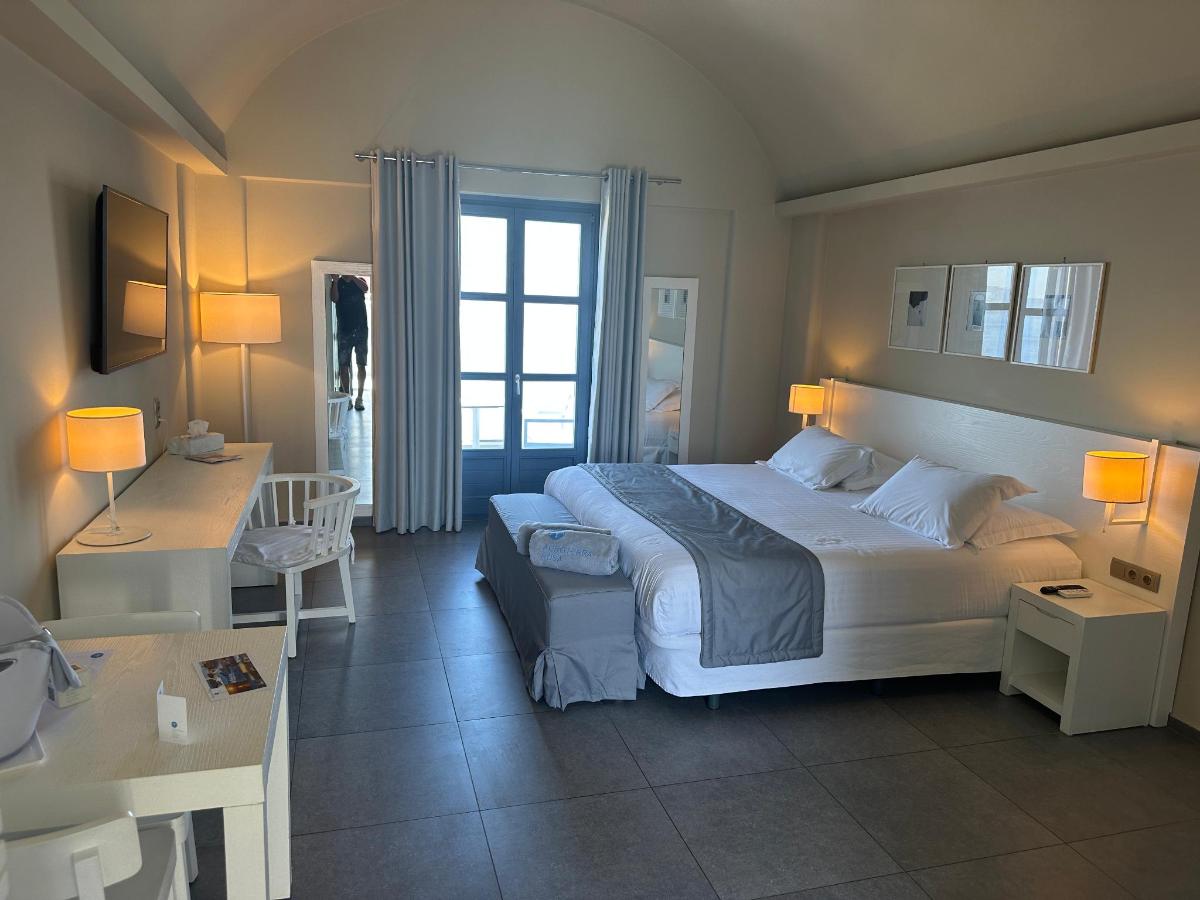 כל החדרים והסוויטות הממוזגים במלון, המשקיפים ללוע הר הגעש, לגן או לכפר אקרוטירי (Akrotiri), נפתחים למרפסת או טרסה. היחידות מצוידות בטלוויזיה בעלת מסך שטוח עם ערוצי לוויין ובמקרר קטן.