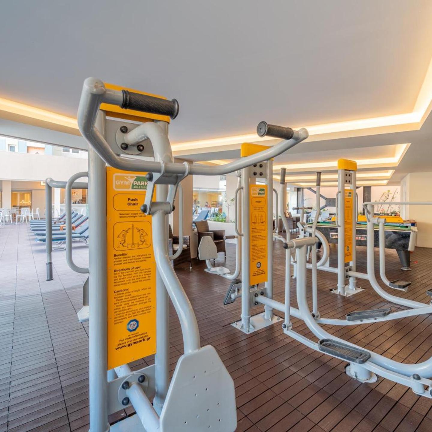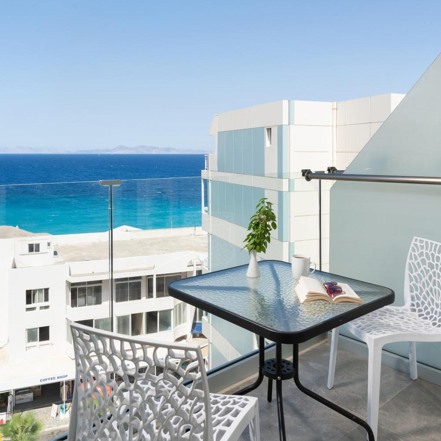 החדרים מרווחים ומשקיפים לבריכה, לעיר או לים האגאי. יש בהם טלוויזיה עם ערוצי לוויין, מקרר, מייבש שיער, כספת ואביזרים להכנת קפה.