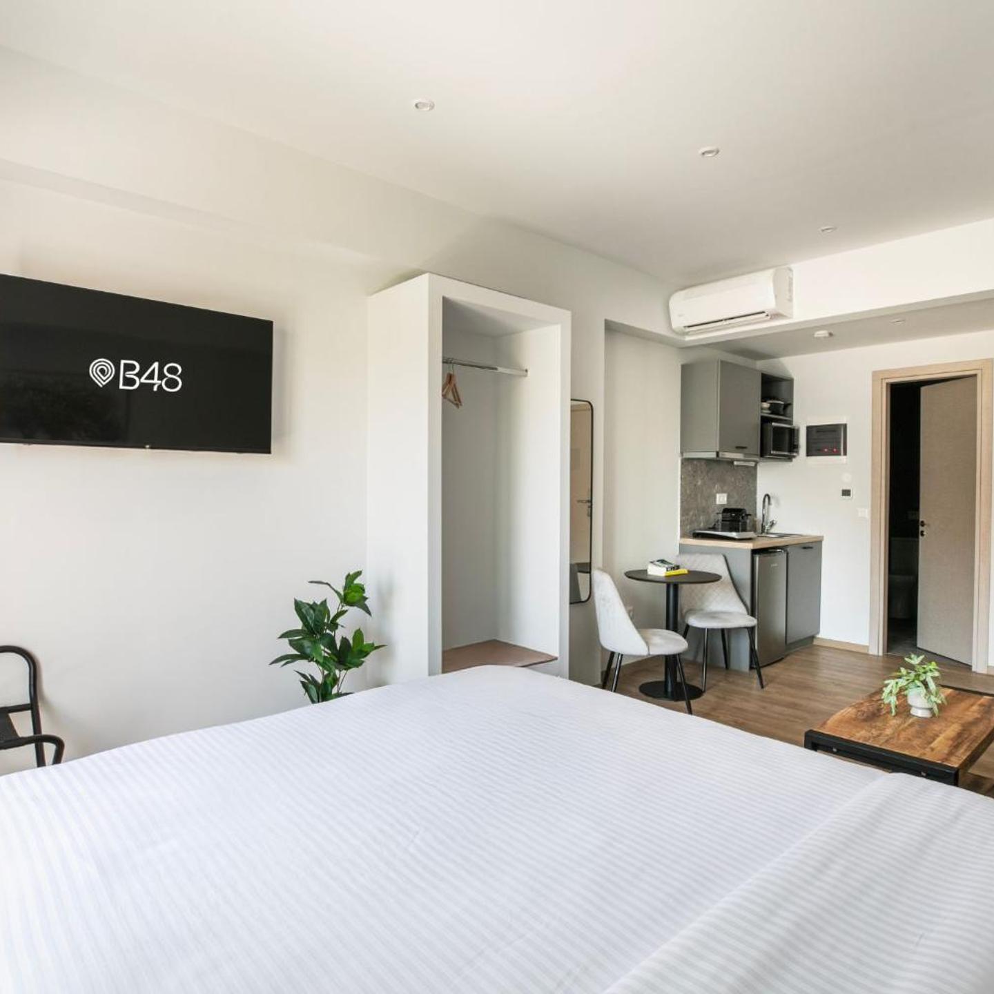 מקום האירוח B48 Athens Dafni ממוקם במרחק של 1.2 ק''מ מתחנת המטרו נאוס קוסמוס ו-2.2 ק''מ ממקדש זאוס האולימפי באתונה, וכולל יחידות אירוח עם אינטרנט אלחוטי בחינם ופינת ישיבה.