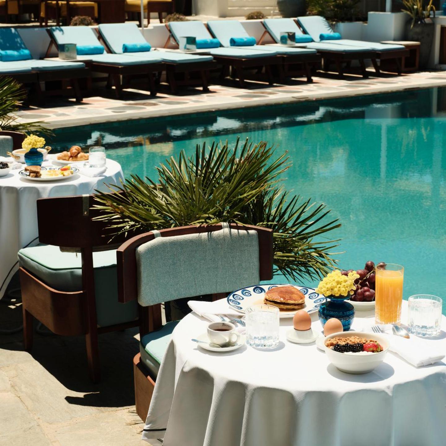Guest can enjoy fine dining at Matsuhisa Mykonos or the Belvedere Club. Live performances are organized during the summer season.