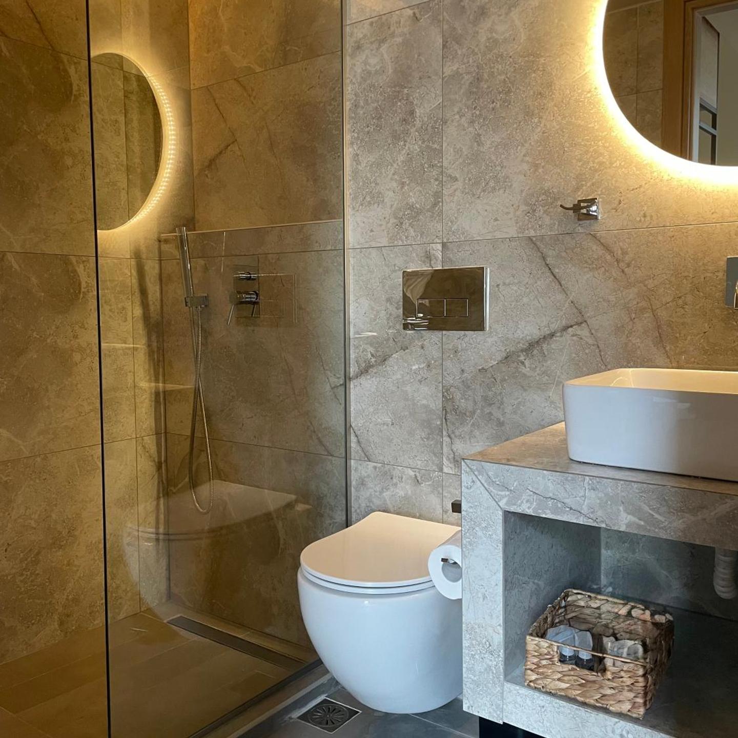 היו מתקנים בחדר לא כל כך מתוחזקים.nחדר הרחצה יחד עם השירותים היה יחסית קטן צפוף. החדר לא נראה 35 מטר כפי שהוצהר ע"י בוקינג בדף הדירה.