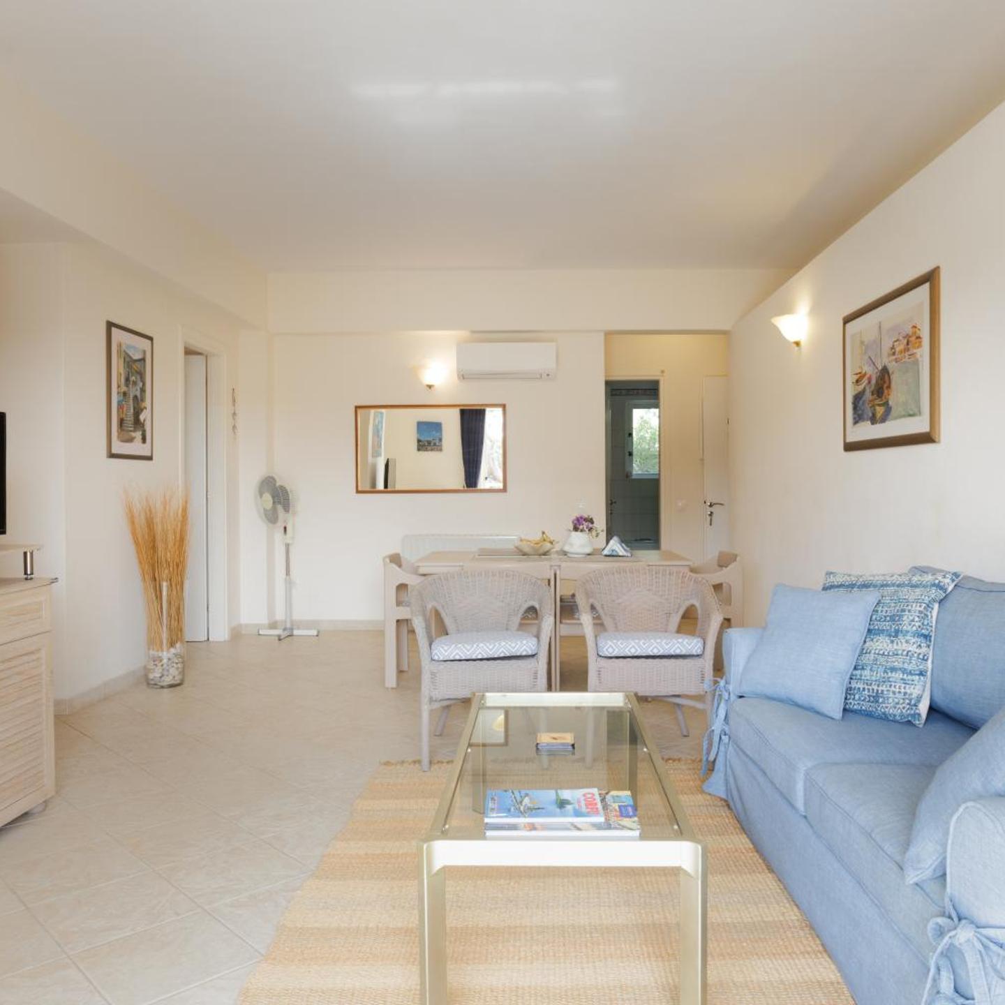 מקום האירוח Blue Coast Suites - Seaside Retreat with Pool in Exclusive Kommeno ממוקם במרחק של 1.8 ק''מ מחוף דפנילה, ומציע בריכת שחייה חיצונית, גינה ויחידות אירוח ממוזגות עם מרפסת ואינטרנט אלחוטי בחינם.