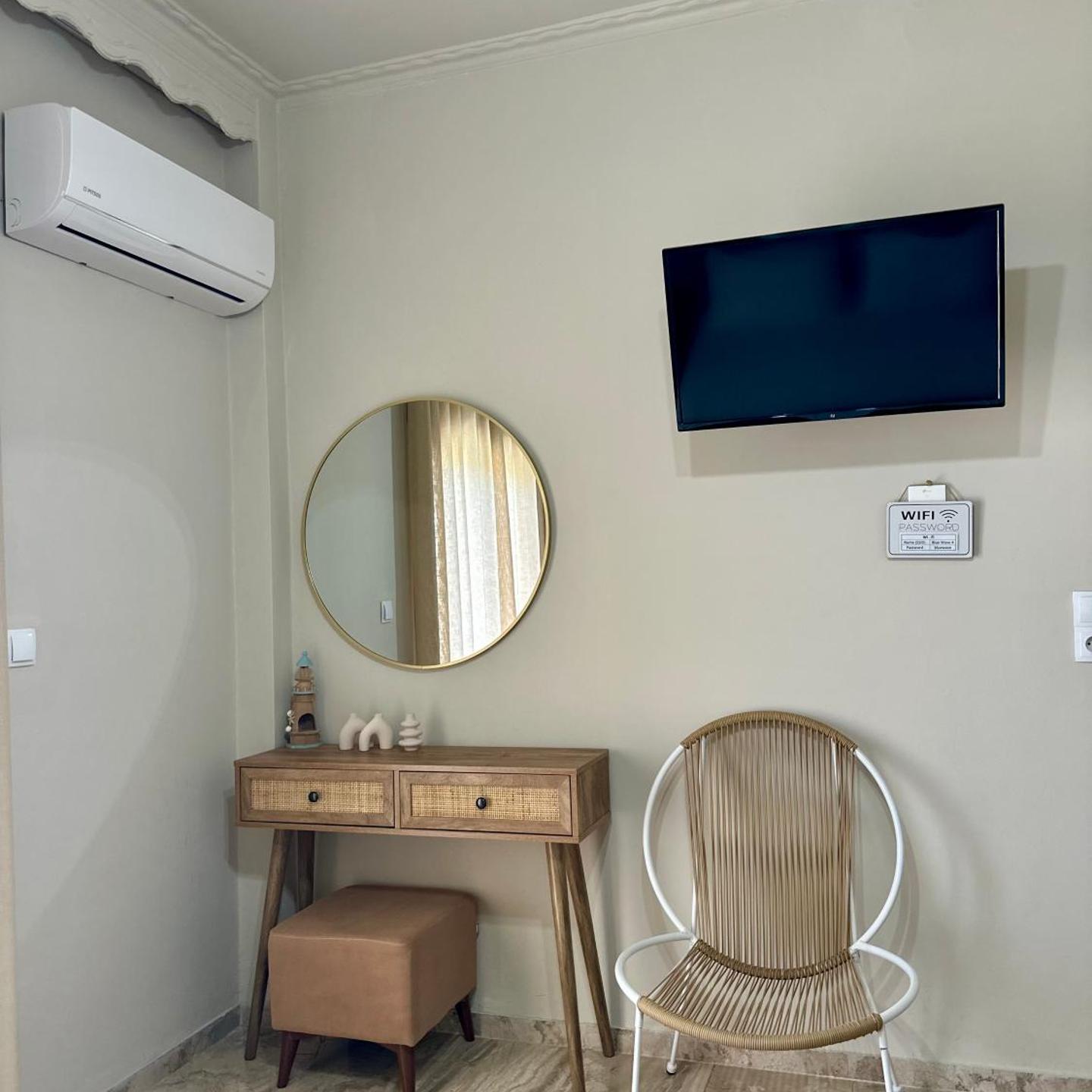 מקום האירוח Blue Wave כולל טרסה, נוף לים, פינת ישיבה, טלוויזיה בעלת מסך שטוח בלוויין, מטבח מאובזר במלואו עם מקרר וכיריים וחדר רחצה פרטי עם מקלחת ומייבש שיער. יש שם גם טוסטר, בנוסף למכונת קפה וקומקום.