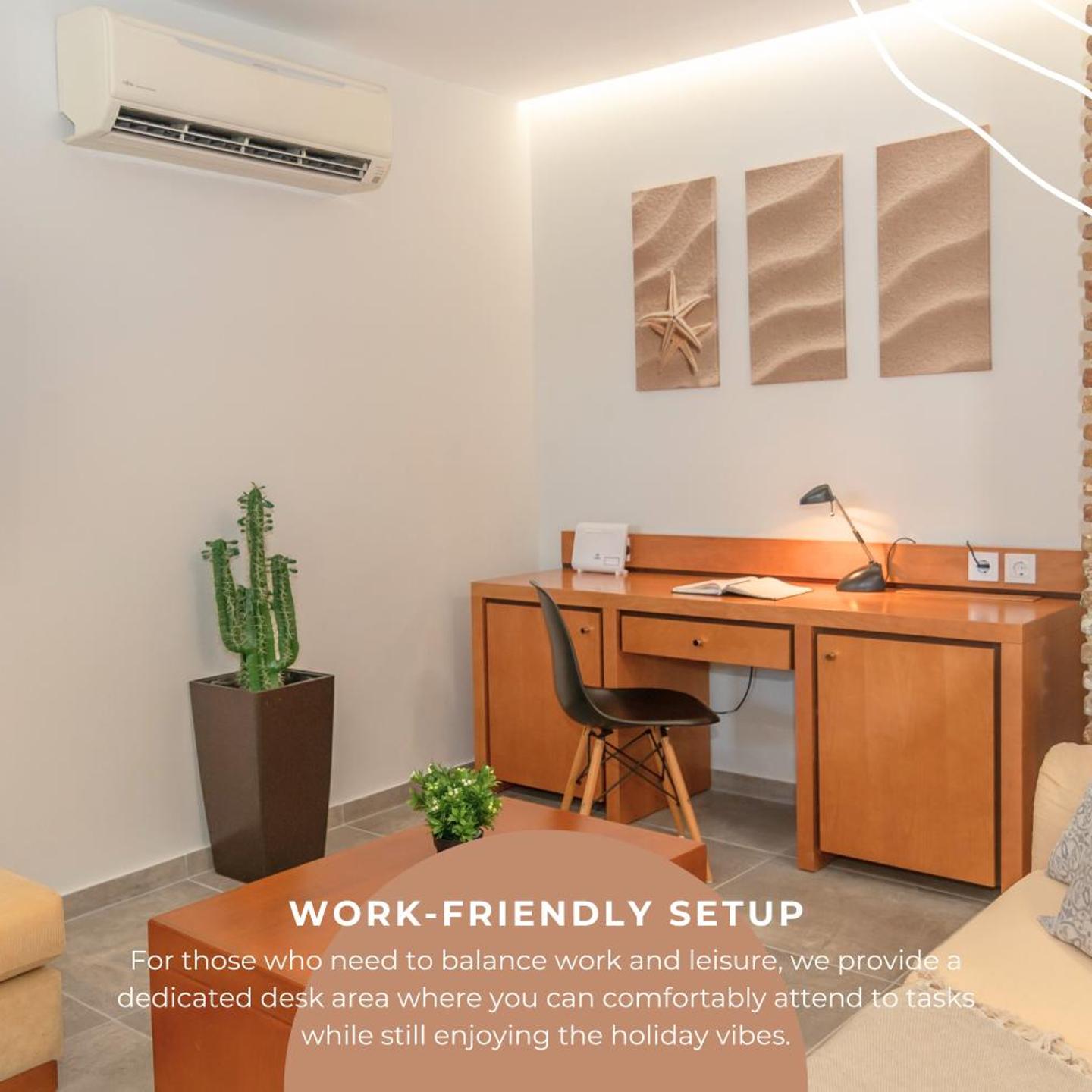 הדירה כוללת מיזוג אוויר, חדר מגורים, מטבח מאובזר במלואו עם מקרר ומכונת קפה וחדר רחצה עם מקלחת ומייבש שיער. מספר חדרי השינה: 2. בדירה תוכלו למצוא מגבות ומצעים.