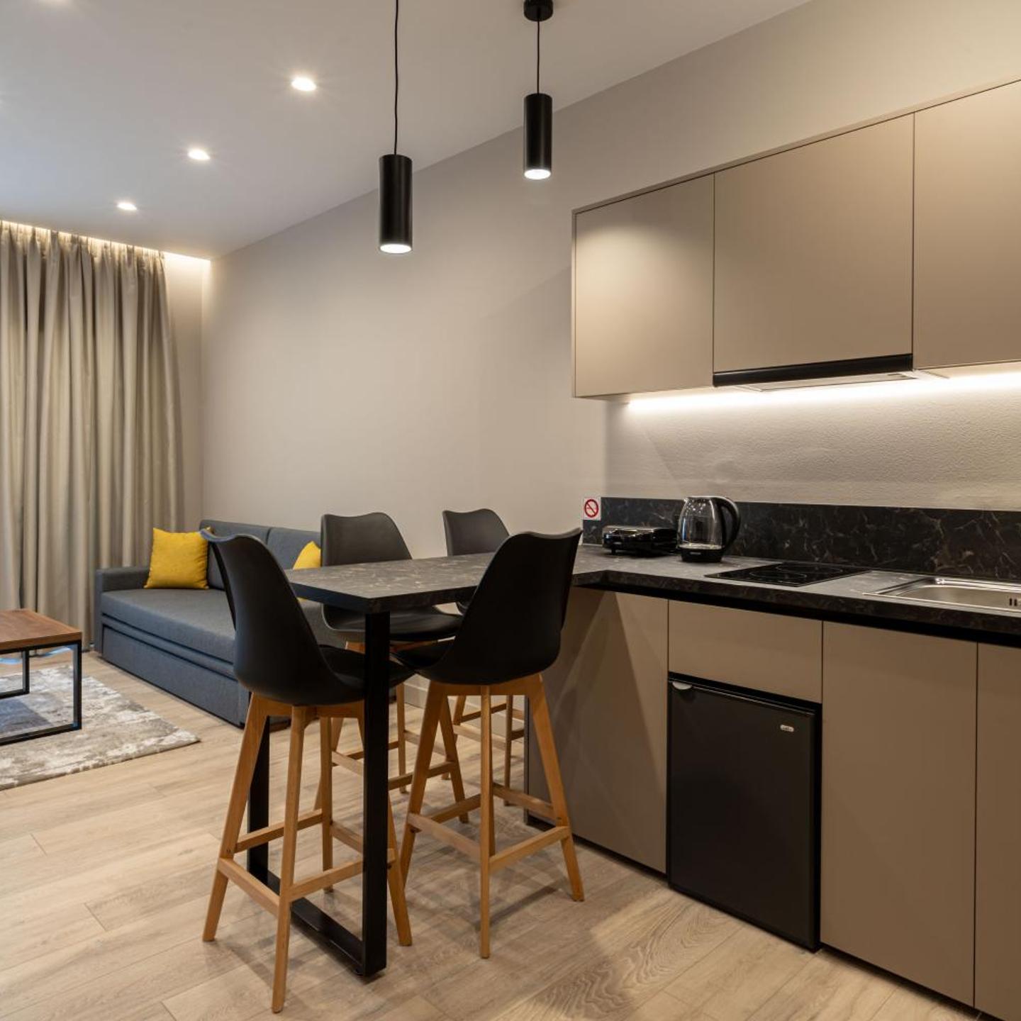 יחידת האירוח כוללת מיזוג אוויר, מטבחון מאובזר במלואו, טלוויזיה בעלת מסך שטוח וחדר רחצה פרטי עם מקלחת, מייבש שיער ונעלי בית. יש שם גם מקרר, מיקרוגל וכיריים, בנוסף לקומקום.