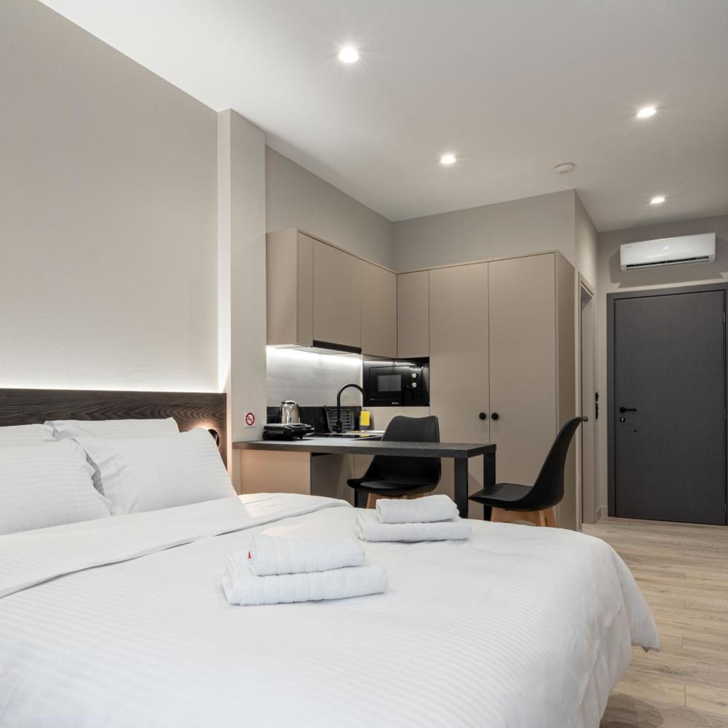 החדר ממוקם ממש מול שדה התעופה. רק לעבור במעבר חציה, אבל בפנים לא שומעים כלום. נוח מאוד גם לאלה שרוצים לטייל בזגוריה ועדיין להיות קרובים לעיר, יש כמה סופרמרקטים ממש קרוב. הכל חדש, נקי ויפה, מטבחון מצויד שהפיק גם ארוחות שלמות. החסרון היחיד המקרר קצת קטן.