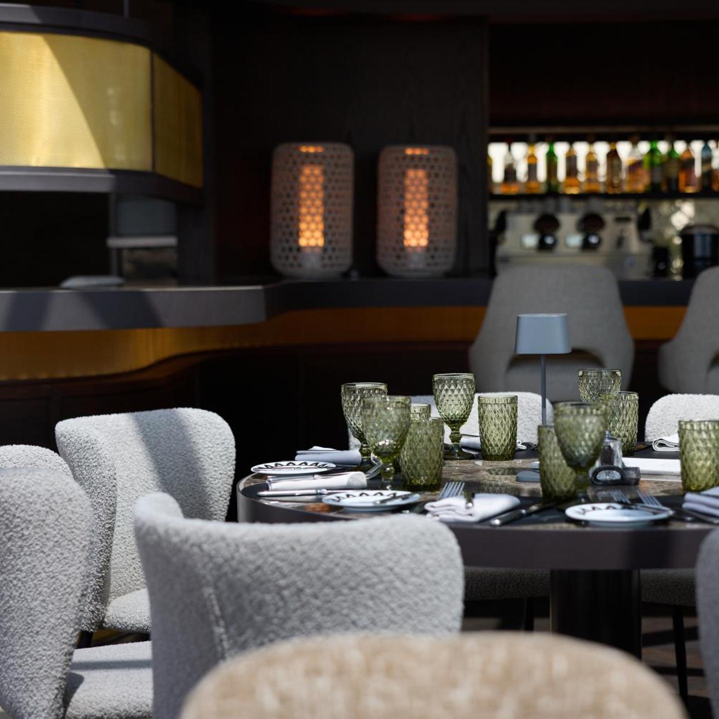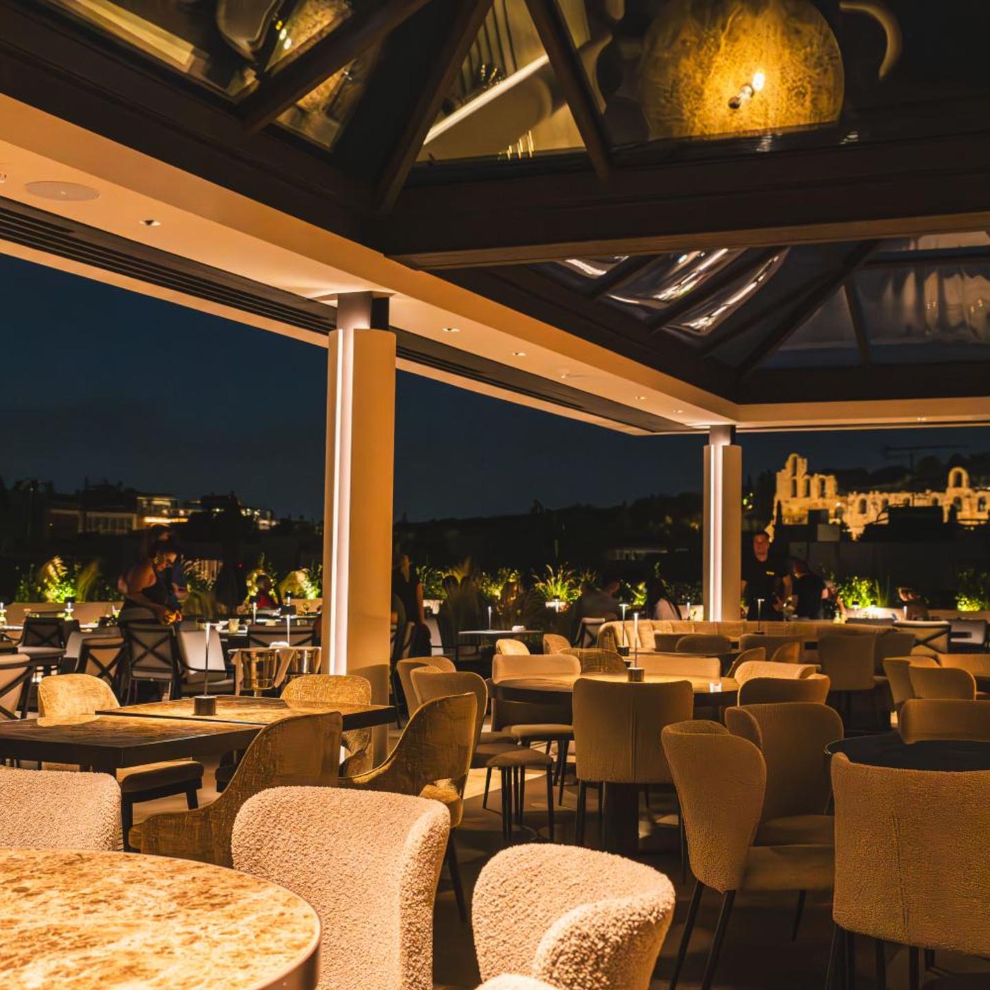מסעדת הגג Acropolis Secret פועלת במשך עונת הקיץ ומגישה מנות יווניות ובינלאומיות. המסעדה המרכזית, Aspassia, מציעה מטבח ים תיכוני וארוחות בוקר אמריקאיות באווירה מסוגננת.