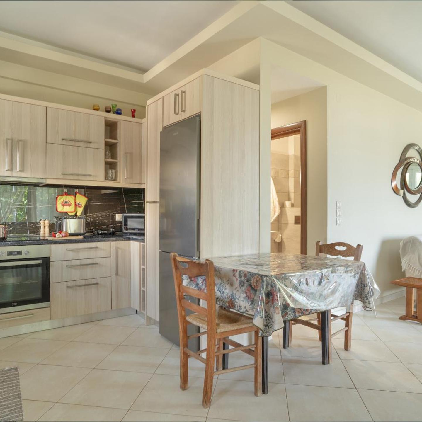 The accommodation is less than 200 meters from the sea, close to restaurants and coffee shops in a quiet neighborhood. A supermarket and bakery are just 50 meters away, and a playground is also nearby. Public transport links are within walking distance.