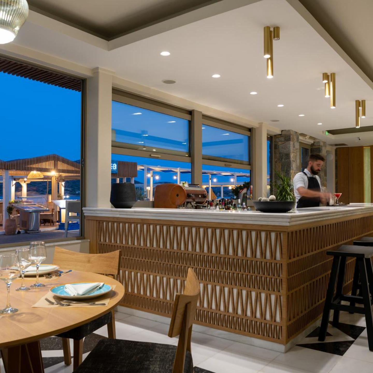 מסעדת החוף Blue Sea שעל הים מגישה מנות מיוחדות מהמטבח היווני והבינלאומי. האורחים יכולים להירגע בבר שבגינת הגג, המגיש קוקטיילים ומציע נוף למפרץ אלונדה. אינטרנט אלחוטי חינם זמין באזורים המשותפים.