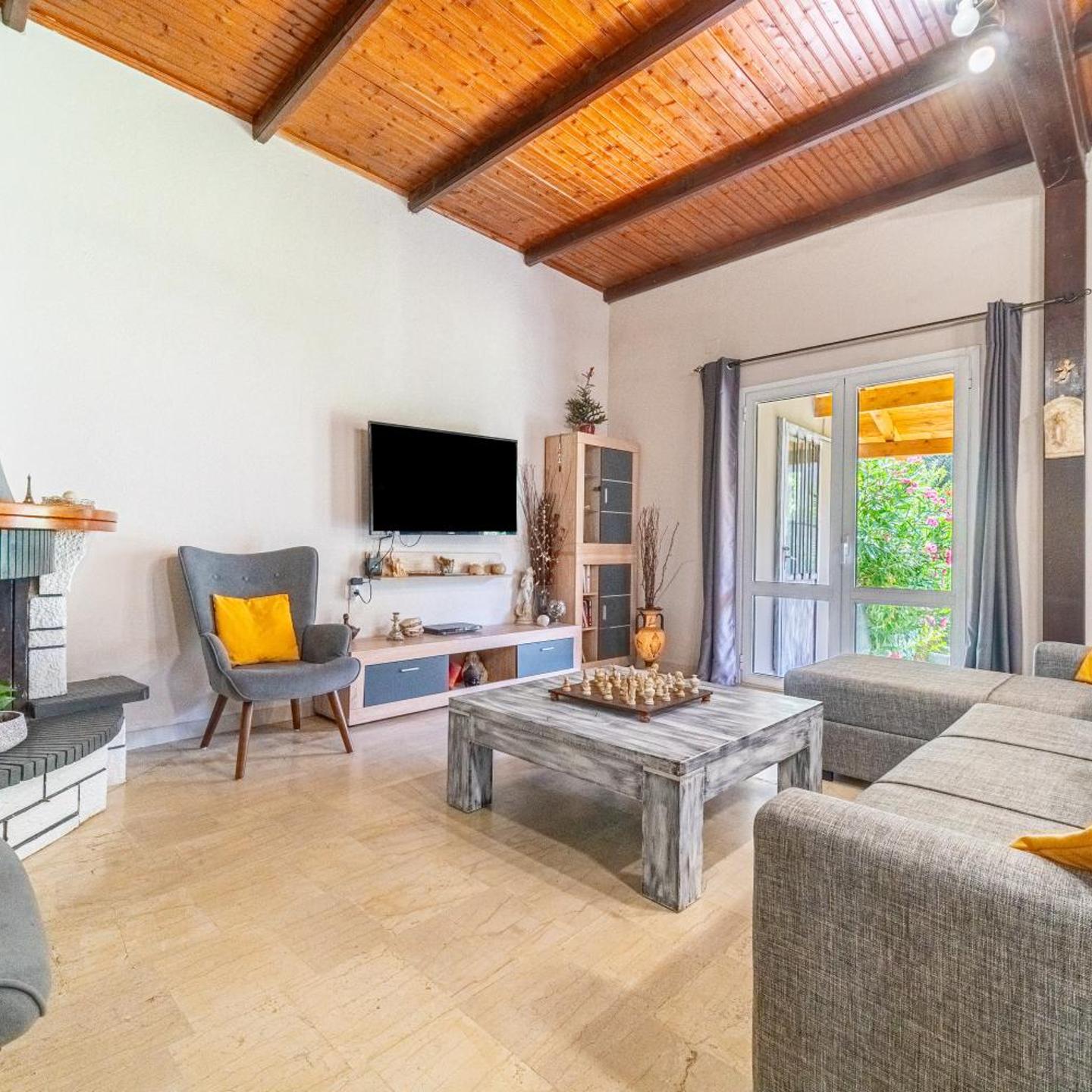 The famous restaurant Archontiko is just 200 m away. Trekking paths on the mountain passing by picturesque villages can be reached nearby. The beach of Mesoggi is 800 m from the house and Chalikounas and Issos Beach are 3 km away.