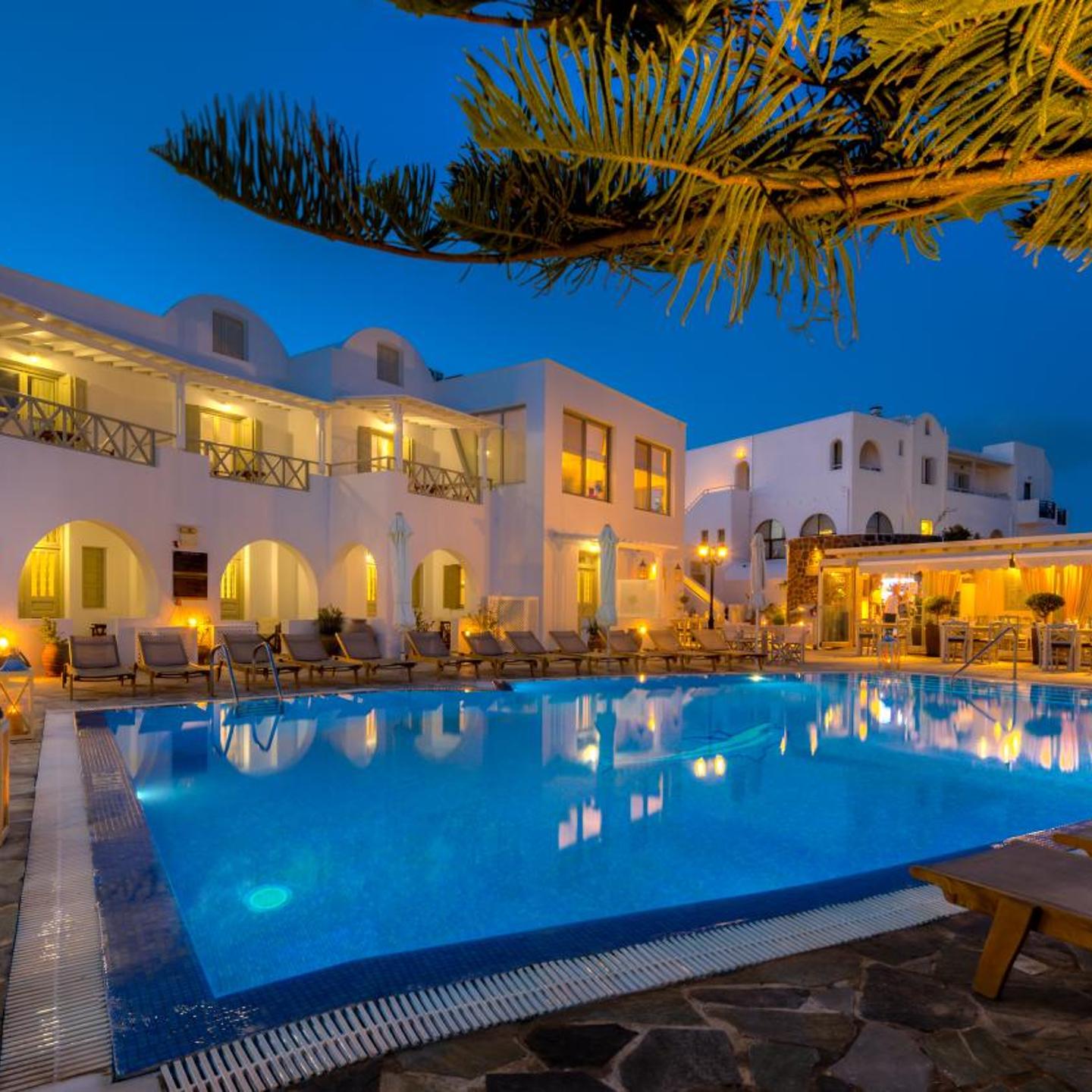 חוף רד ביץ' (Red Beach) המפורסם נמצא במרחק שני ק"מ מהמלון, והעיירה הציורים אויה (Oia) מרוחקת 22 ק"מ משם. נמל אורמוס את'ינוס (Ormos Athinios Port) נמצא במרחק של 8.5 ק"מ משם, ונמל התעופה סנטוריני (Santorini Airport) ממוקם במרחק 12 ק"מ משם.