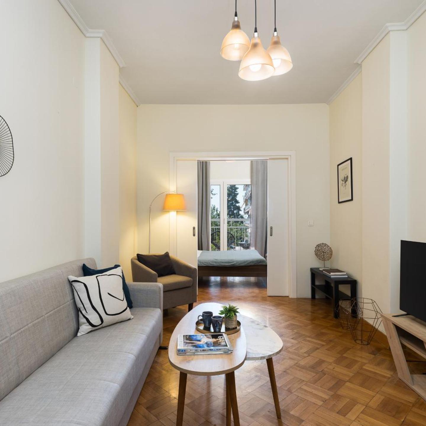 Queen Olga's beautifully renovated residence. The property is well-appointed and comfortable, making it an excellent choice for those seeking a relaxed and enjoyable stay in Thessaloniki. With its convenient location and high-quality amenities, the Queen Olga rental is a top choice for anyone visiting this vibrant and exciting city.