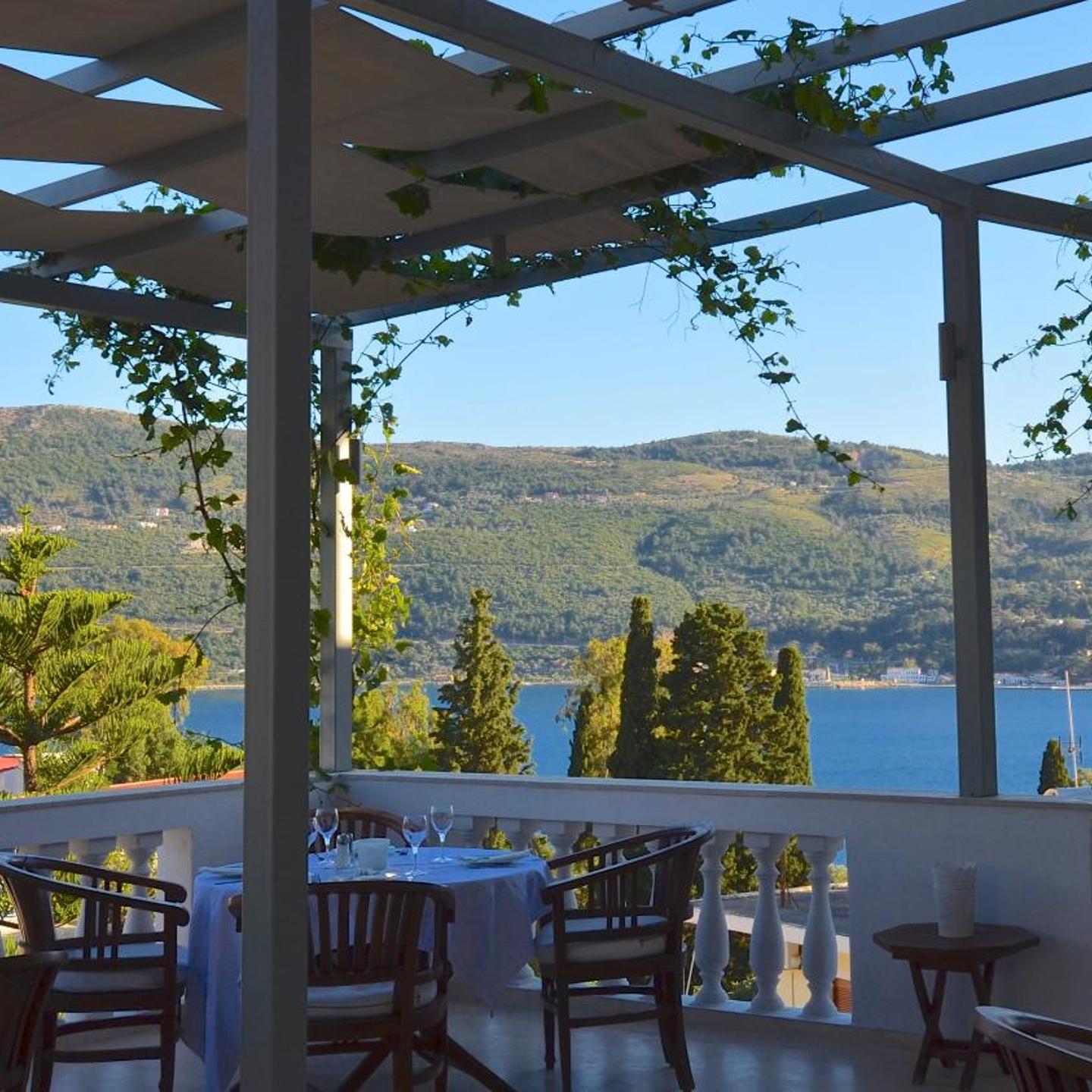 הבר פתוח כל היום ומגיש ארוחות צהריים וקפה. מסעדת המלון מגישה מנות יווניות מסורתיות ועכשוויות על גבי טרסה מכוסה גפנים, שממנה נשקף נוף של סמוס טאון ביי (Samos Town Bay).