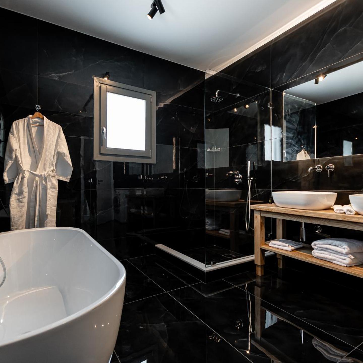 All split-level houses have 90sq.m. (970sq.ft.) living space, two bedrooms, two bathrooms, a living room, a fully equipped kitchen, air conditioning, WiFi, Netflix Smart TV and balconies overlooking the green valley of Potamia and the century-old plane trees. Each house can accommodate up to six guests.