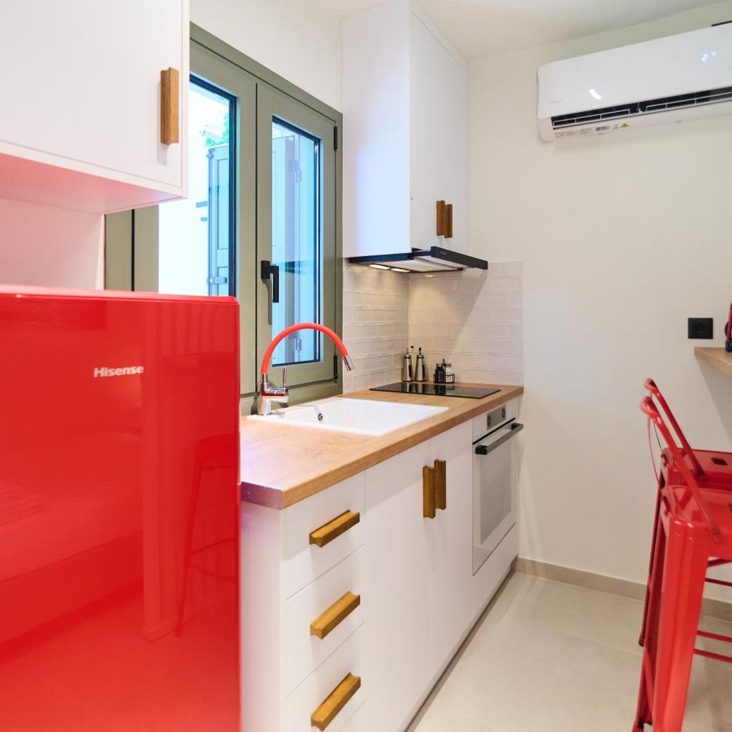 בדירה יש מצעים, מגבות, טלוויזיה בעלת מסך שטוח, מטבחון מאובזר במלואו וטרסה עם נוף לעיר. מספר חדרי השינה: 1. מספר חדרי הרחצה: 1. בדירה יש מיזוג אוויר, וגם חדר רחצה עם מקלחת ומכונת כביסה.