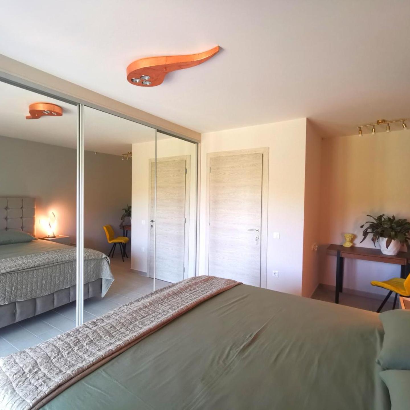 A modern , stylish and luxurious brand new apartment (55 sqm), comfortably accomodating maximum 3 people, located in Alepou, a quiet residential area 2.2 km from the airport and 5 km from the city centre! Very quiet area with free parking.