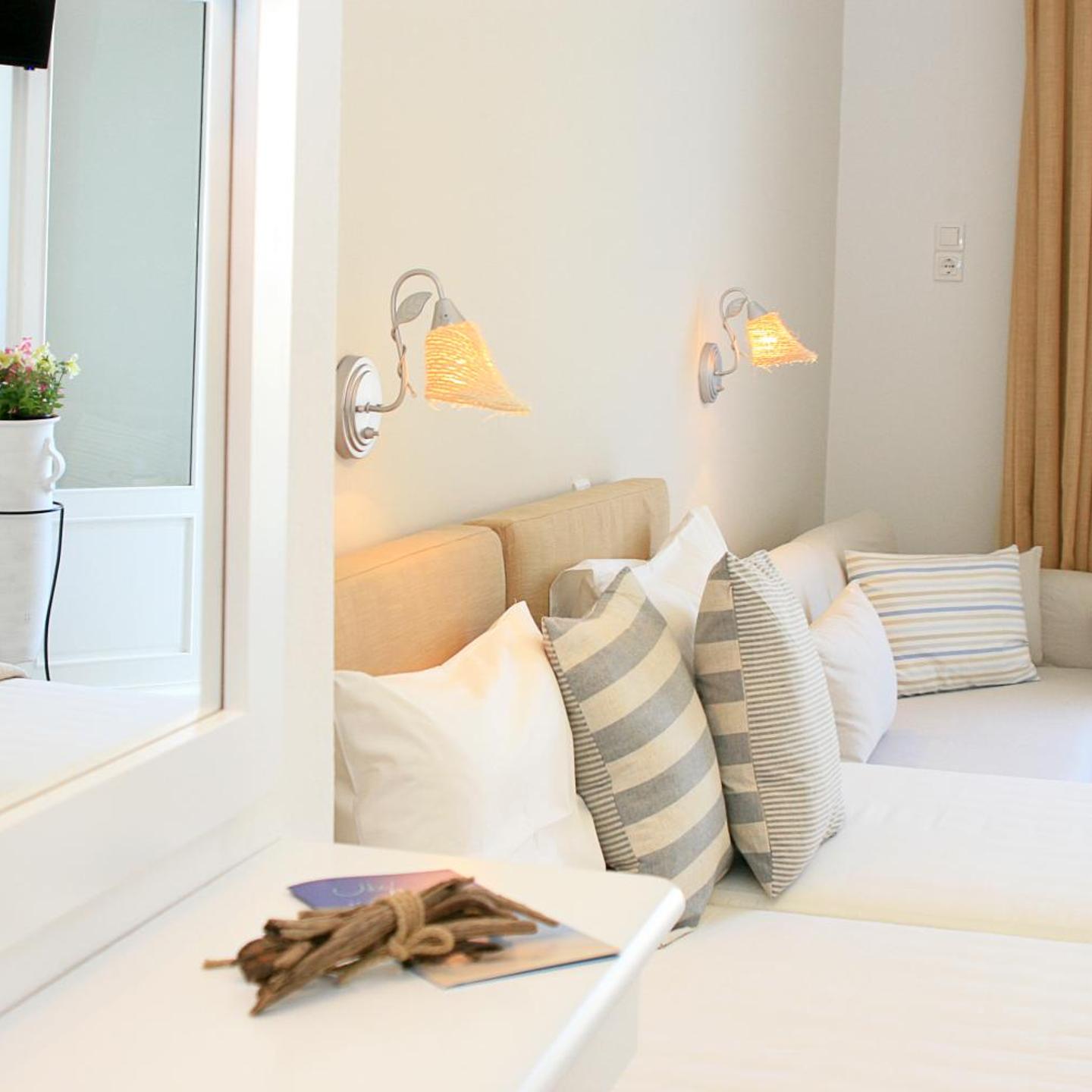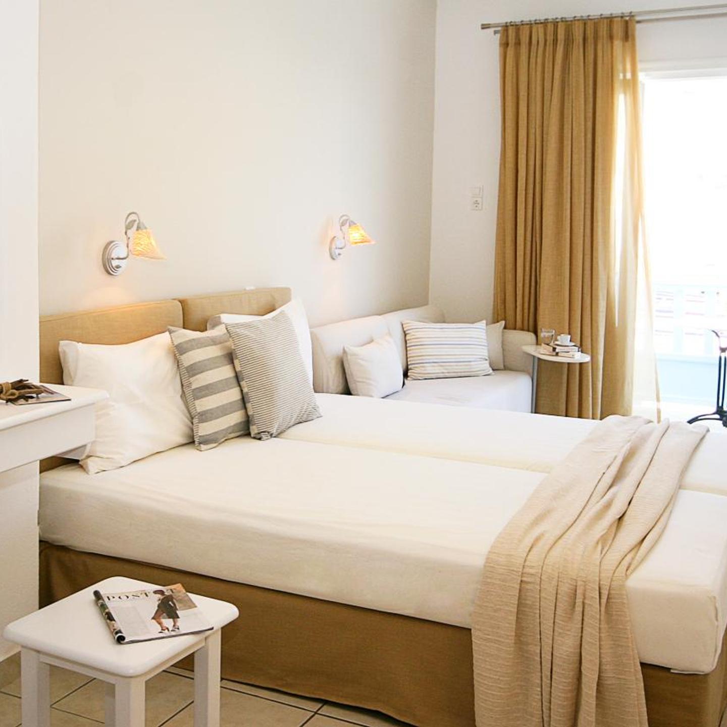 מקום האירוח Paradissos Hotel שוכן בPera Gyalos, וכולל יחידות אירוח כוכב אחד עם מרפסות פרטיות. המלון ממוקם במרחק של כ-מספר צעדים מחוף פרה גיאלוס ו-700 מ' מChurch of Panagia Portaitissa, ויש בו אינטרנט אלחוטי בחינם. צוות המקום יכול לארגן הסעות.