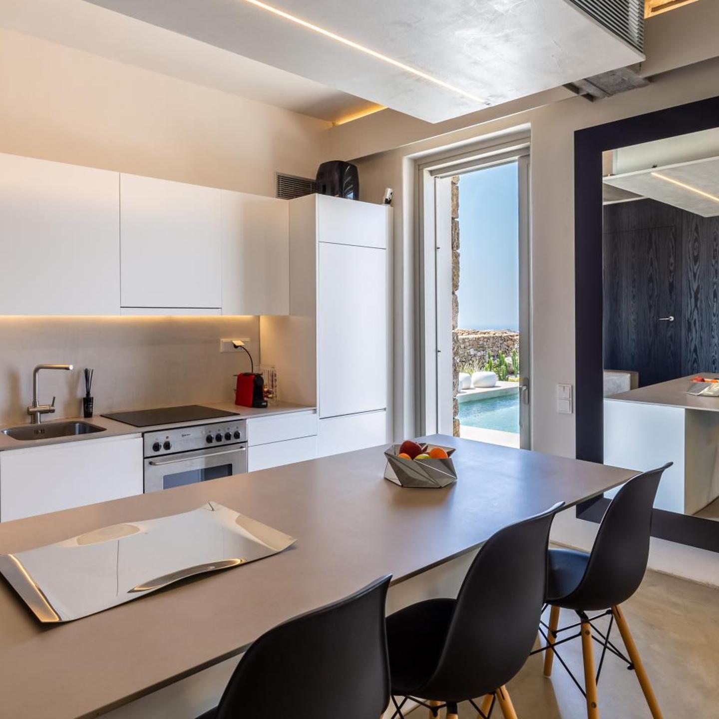 The villa combines sunset views with easy access to both peaceful and lively areas – perfect for guests looking to enjoy both relaxation and the vibrant side of Mykonos.