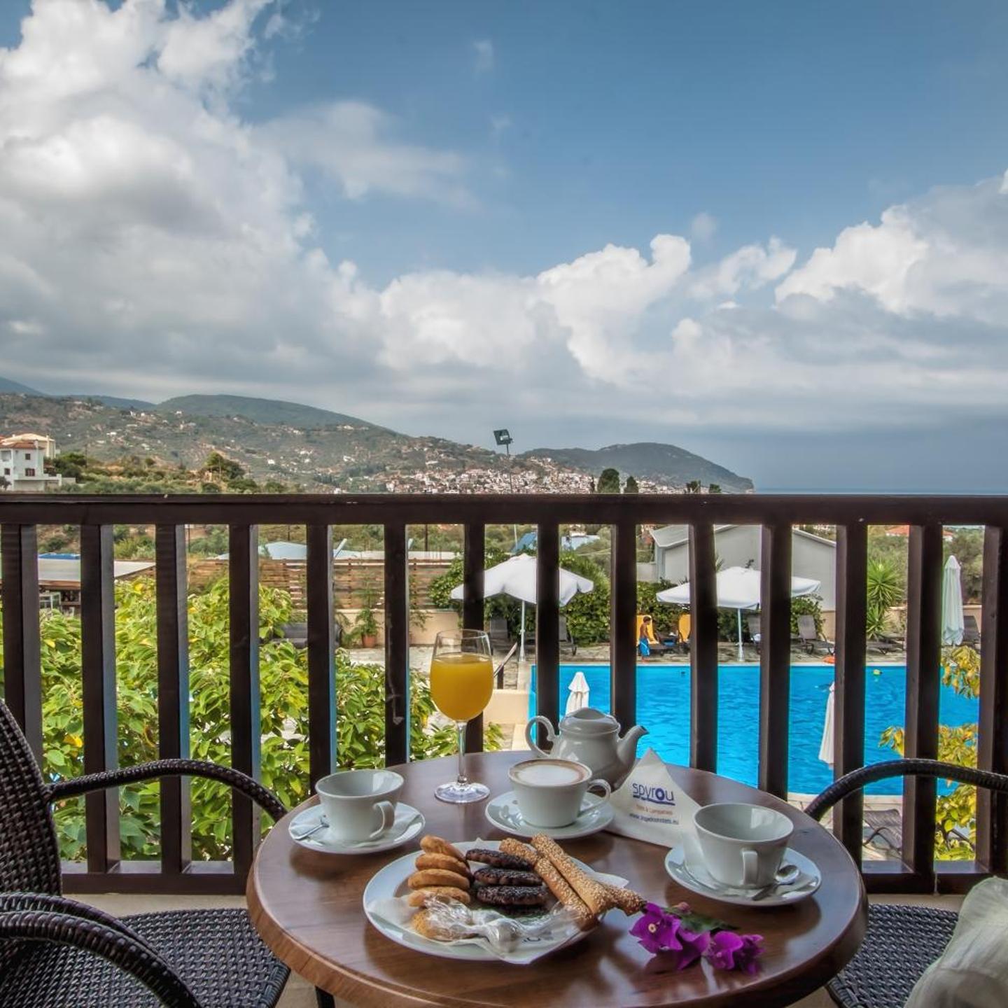 מלון וספא סקופלוס הולידייז (Skopelos Holidays Hotel & Spa) הוא מלון בדירוג של 5 כוכבים הממוקם במרחק של 1.4 ק"מ בלבד מנמל סקופלוס (Skopelos Port), ומציע נופים פנורמיים של מפרץ סקופלוס (Skopelos Bay) ושל האזור ההררי הסובב הנשקפים ממנו. מתקני הנוחות המפוארים במלון כוללים ספא מאובזר היטב.