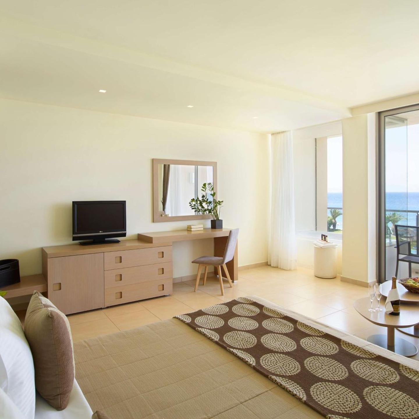מלון מפואר ויפה. בריכת אינפיניטי מדהימה הכוללת גם בריכת ישיבה ועוד אזור ״ג׳קוזי״ קר בתוך הבריכה. הרבה מקומות ישיבה נוחים ונקיים. הים מדהים והחוף נקי ונעים.rnחדרים נקיים, שירותים ואמבטיה יפים ומפנקים. קיבלנו חדר עם נוף לסוויטות, היה יפה ממש.rnהארוחות טעימות ומגוונות. מוצע לאורך כל היום אוכל בחדר אוכל בשעות המתאימות או בעמדה בבריכה.rnהשירות מעולה וכולם אדיבים מאוד. הגענו ביום הראשון כבר ב10:00 בבוקר ונתנו לנו להשתמש בכל מתקני המלון ולהיכנס לארוחות לפני שקיבלנו את החדר וביצענו צ׳ק אין.rnהמלון קרוב לשדה תעופה ובסביבותו מסעדות רבות (לא השתמשנו כי היה לנו הכל במלון). במרחק רבע שעה נסיעה מהעיר. נסענו הרבה בגלל הקרבה.rnהמתקנים מדהימים, הכל חדש ואסתטי וממליצה מאוד על המלון ונחזור אליו בחופשה הבאה ברודוס