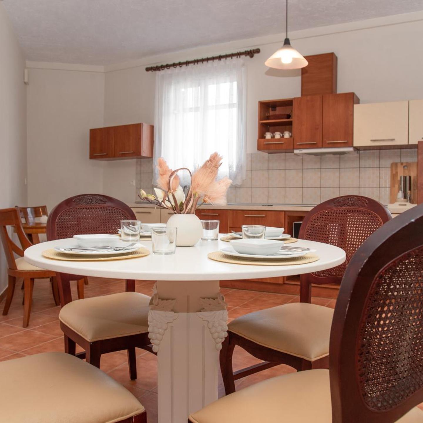 A beautiful house located just 15 minutes away from the central town. This serene location provides easy access to all the beaches in the middle and south of the island and connects conveniently with the main road for the north, allowing you to easily escape the summer hustle and bustle. However, should you desire a taste of town life, reaching it by car or bus is a breeze, also just 15 minutes away.