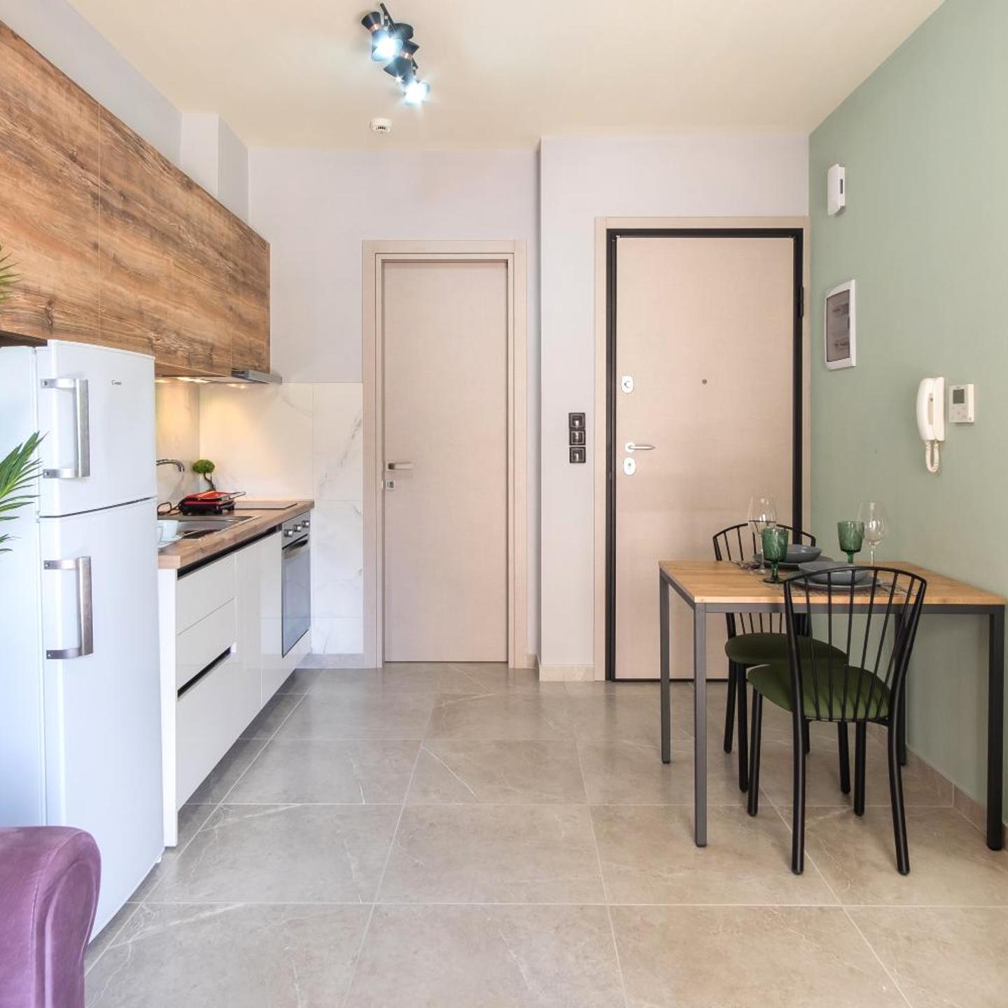 יש חניה צמודה. הבניין יפה, חדיש מטופח ומבריק. יש מפתח רגיל לדלת הכניסה לבנין ולדלת הדירה שזה נוח לשומרי שבת. יש מגבות מפנקות ומרפסת מרווחת. הצוות מגיב רק בטלפון אבל עוזר בפתרון בעיות (לא היו קולבים - הביאו) ומתקן תקלות (מזגן). יש מכונת אספרסו, טוסטר לחיץ וכלים בסיסיים לשני אנשים. מרחק הליכה קצר לחנויות מותגים ולעיר העתיקה.