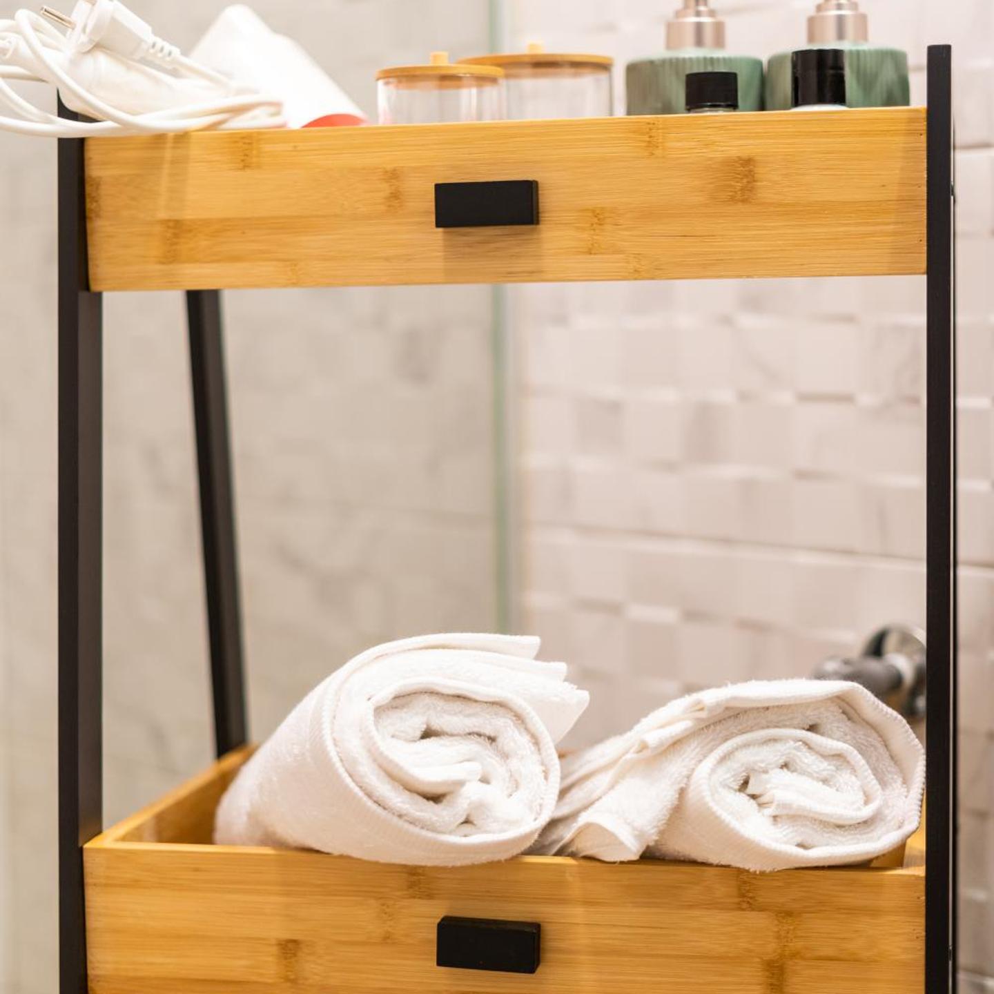 אין מראה גדולה. באמבטיה: אין שטיח לרגליים, אין מגב ו/או סמרטוט רצפה ואין נעלי בד. לא היה מספיק נייר טואלט (היינו 3 ימים). במטבח: אין מגבת כלים, אין שקיות רזרביות לאשפה, אין כלים בסיסיים כמו קולפן, פותחן, מספריים.