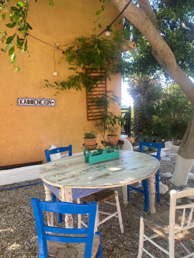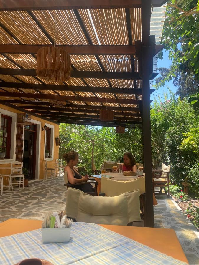 An awarded homemade breakfast buffet, enriched with pies, cakes and jams, is served daily at the spacious stone-paved terrace surrounded by colourful flowers and various trees. Traditional Greek dinner and local wines are also served on a regular basis.