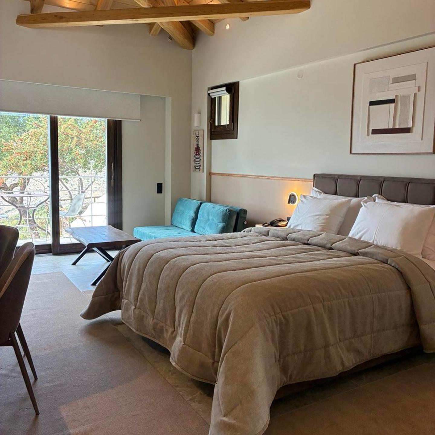 חדרי המלון כוללים חדרי רחצה מפוארים ונופים של ההרים, המפרץ הפגאסטי (Pagasetic Gulf) ומקריניצה (Makrinitsa). האורחים יכולים ליהנות מאפשרויות המרגוע הרבות שמציע הספא היוקרתי במלון, בטיפולם המסור של אנשי הצוות המקצועיים.