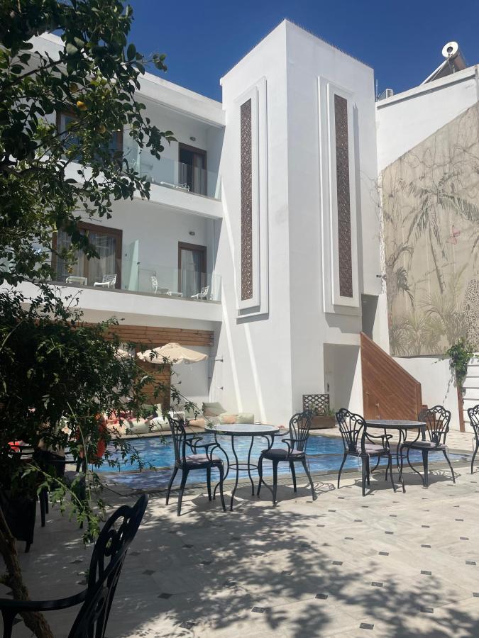 בריכת השחייה הייחודית שעל הגג מציעה מיטות שיזוף חינם עם שמשיות, שם תוכלו להירגע וליהנות מהנוף הנפלא של הים האגאי.