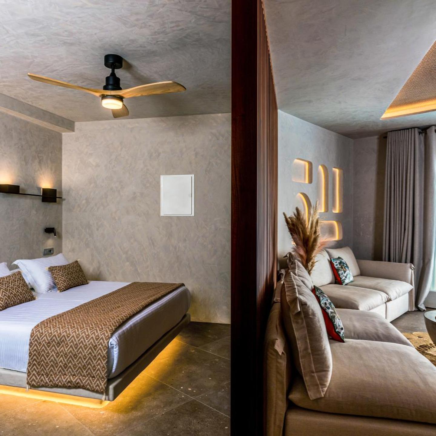 Carved in the volcanic rocks, each unit harmoniously combines tradition with modern design. Cozy indoor spaces with high quality wooden furniture, one to two bedrooms and outdoor jacuzzi/plunge pools, invite you to discover the enigma of the Aegean phos. The dazzling light that peeps out through the hill of Vothonas, the carved stone that reminds you of a lunar scenery in combination with the whitewashed houses comprise the very soul of this landscape.