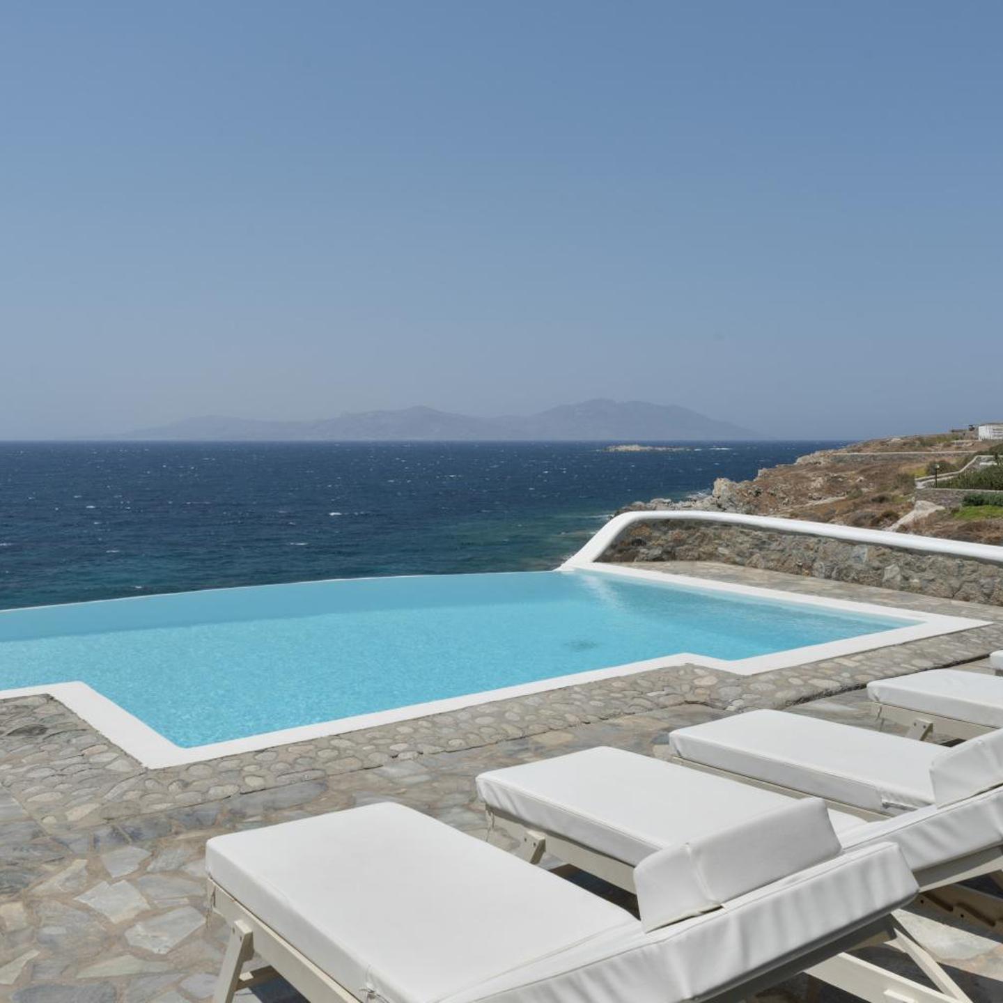 An infinity pool in the exteriors is ideal for sunbathing, dining, enjoying an aperitif and stargazing, providing you with a magnificent view of the sea line and of the majestic sunset!