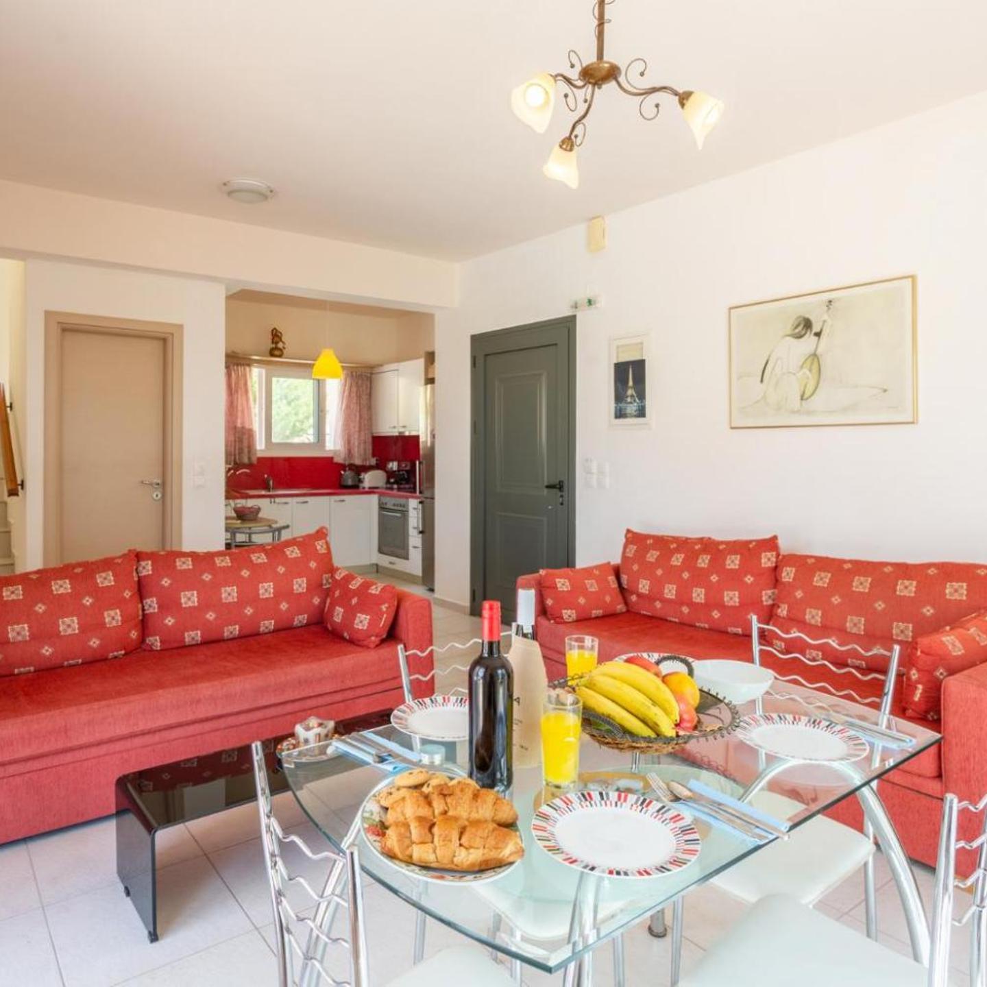 Ground Floor: Features an open-plan living area with a well-equipped kitchen, comfortable lounge, and dining area. There’s a twin bedroom on this floor with an adjacent bathroom, and patio doors open onto the pool terrace.