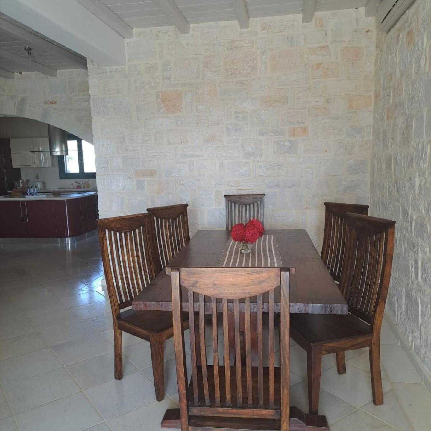 The house is a newly built stone architect and has marble floors, which gives it a great freshness. All openings are equipped with mosquito nets. Each room has adjustable central air conditioning.