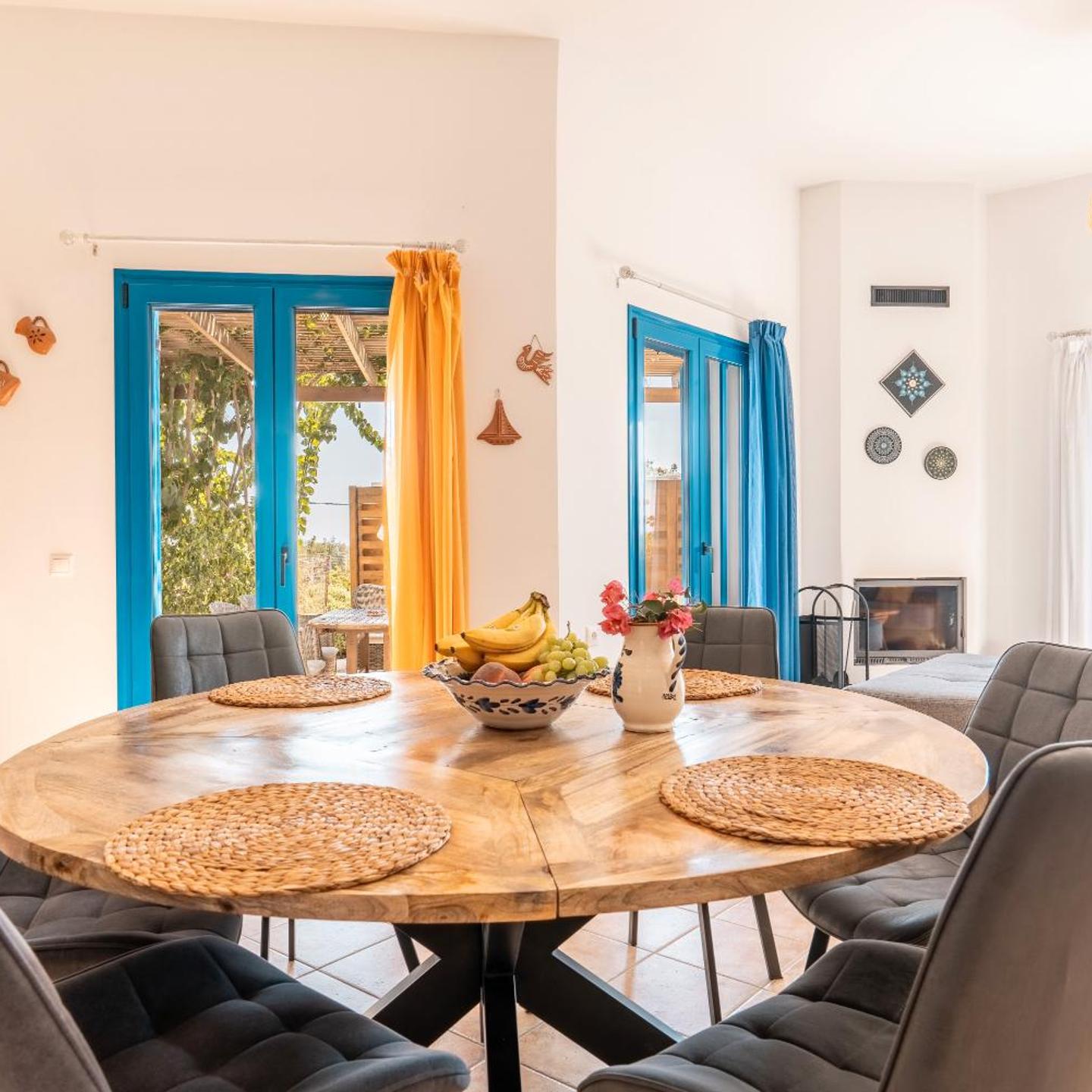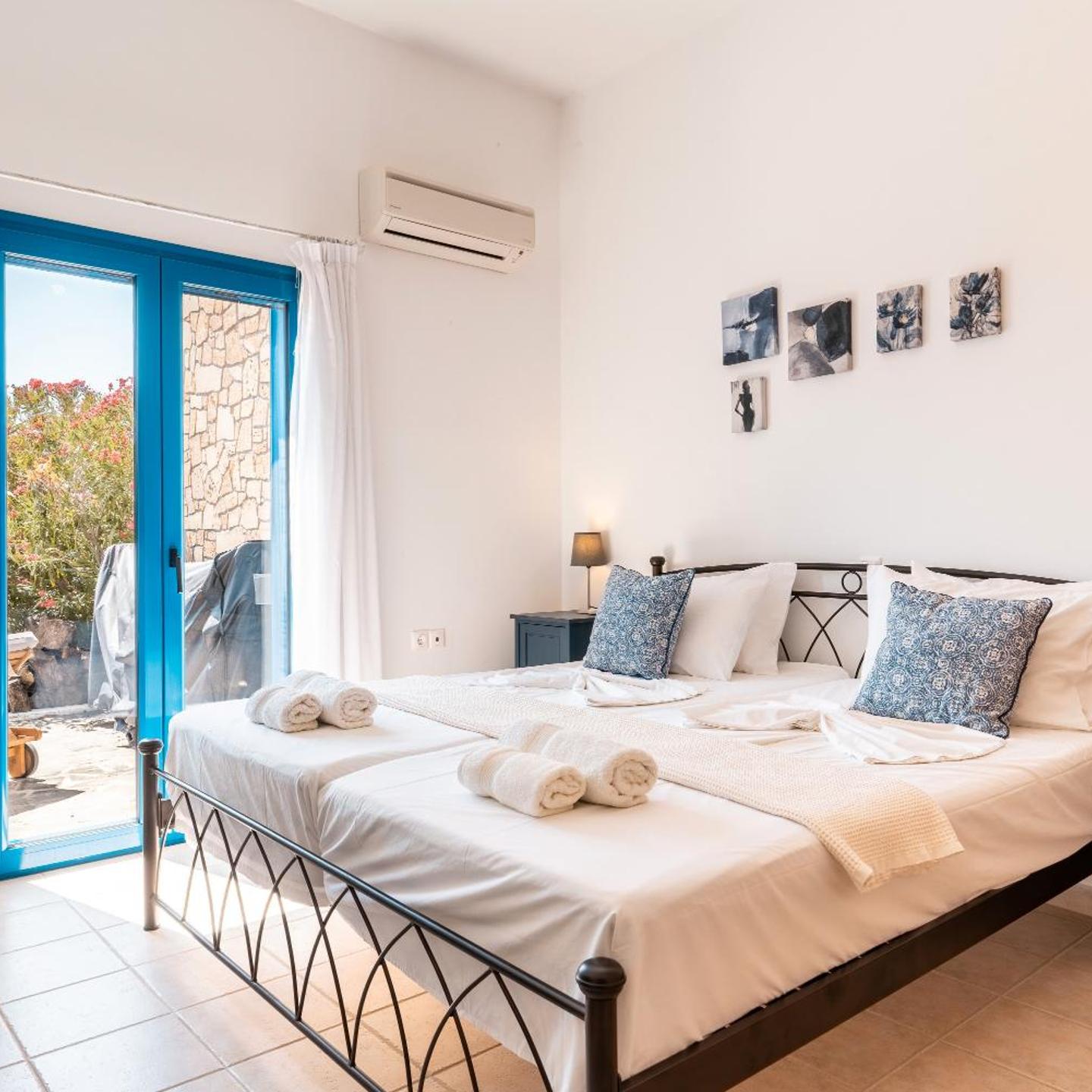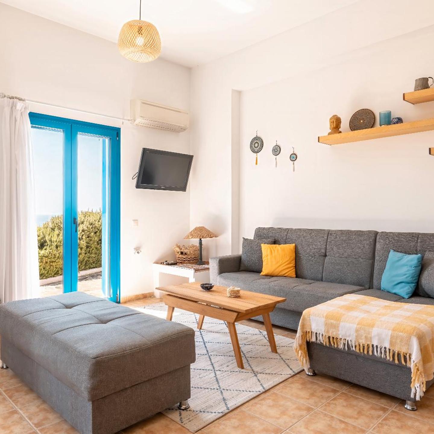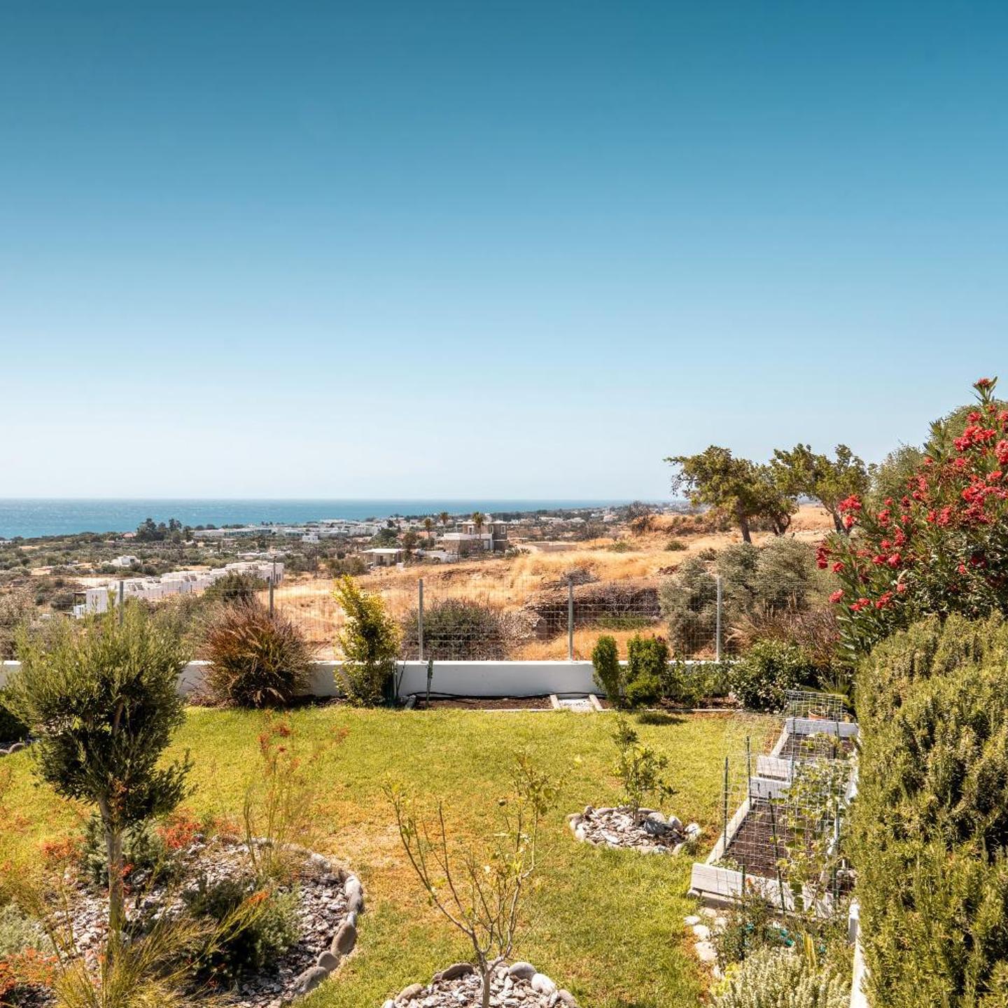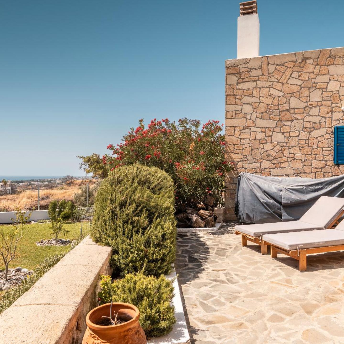 Relax in our vacation home "Villa Kalliope". On our beautiful terrace you can enjoy a stunning sea view and end the evening with an impressive sunset. The terrace has a beautiful pergola with dining table, large parasol and two sun loungers.