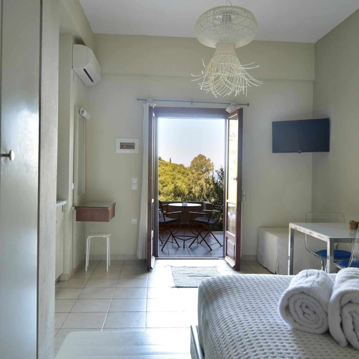 שקט. נקי. חוף חולי במרחק 2דק הליכה כולל מדרגות. היינו בספטמבר ממש לבד בחוף.nנוף מהמם.nמטבחון בחדר.אפשר לשבת על הנוף .במרפסת.nיוליה מקסימה ועזרה בכל מה שביקשנו.n5 דק נסיעה מקסיופי הכפר הקרוב. ועוד 10 דק נסיעה ל achrabi nאהבנו ממש! למי שאוהב שקט מומלץ בחום. nפחות עם ילדים קטנים בגלל המדרגות לחוף.