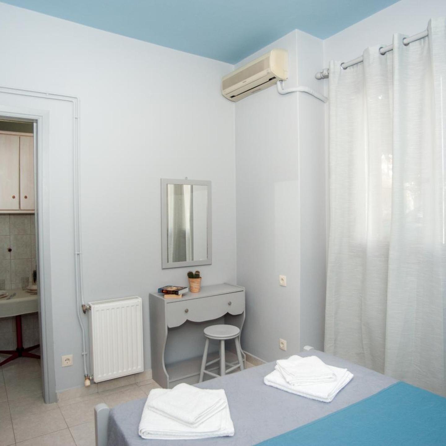 המיקום מצויין. קרוב לכיכר המרכזית. לא רחוק מהנמל. באיזור חנויות.rnתחנת אוטובוס קרובה. חברת השכרת רכב קרובה ולא רחוק ממרכז מידע לתייר.rnאנחנו היינו בחדר מספר 3 עם פטיו. חדר גדולת מטבח מאובזר כולל קומקום לקפה.rnמקלחת טובה. מים חמים מגיעים לאחר זמן רב של זרימת מים. בעיית ניקוז, כלומר עם הרחצה מים עולים מעלה לעבר רצפת המקלחת. בזמן שאנו התארחנו התארחו גם משפחות [יווניות] והיה קצת רעש מהילדים. כיוון שאנו היינו בחוץ רוב הזמן אז עניין זה היה זניח.rnשמפו ומרכך היו ומכיוון שכניראה החדרנית ראתה שיש לנו שמפו מעצמנו לא דאגה למלא את החסר.