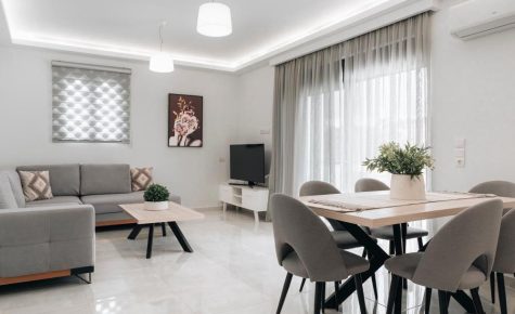 An entire luxury 1st-floor apartment in Zakynthos Island, The apartment consist of a living room, a kitchen with fully electrical appliances, 2xLuxury double bedrooms, a Bathroom, and a terrace balcony on both sides on the apartment. The apartment can host up to 5 people. It is located btw Kalamaki village and Zante town with a 5' drive on each destination. The apartment is new and has been constructed in the winter of 2021 and is fully new furnished.